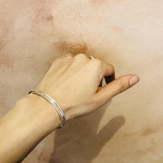 *バングルは無理に開閉したりせず、スリットをご自身の手首に合わせてご使用ください。また、着脱の際はバングルの片側だけをつまむのではなく、親指と人差し指でバングル全体を覆うようにすると歪みや破損防止になります。