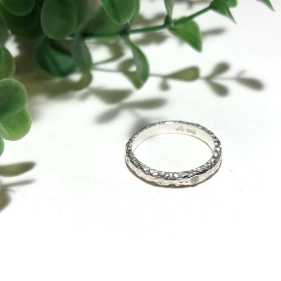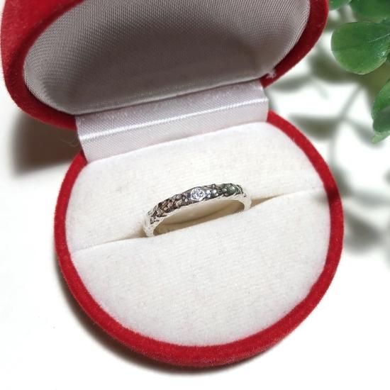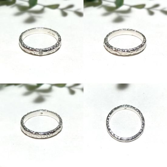 *ポコポコとラフに打った仕上がりの一粒のジルコニアが埋め込まれたシンプルリング