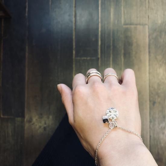 スタッフ手首周り約15cmで約17cmブレスレット着用。