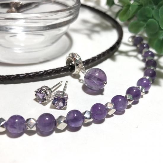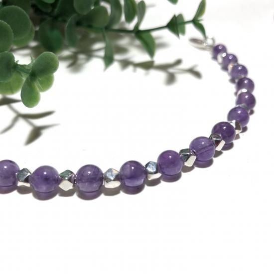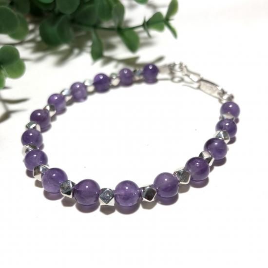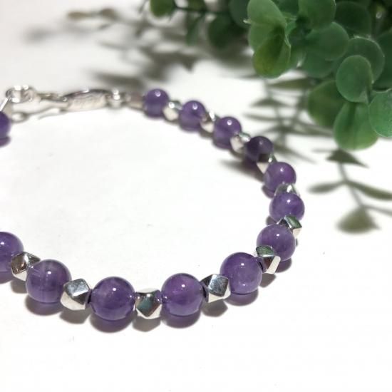 *2月の誕生石でもあるアメジスト6mm(±0.5mm)と小さな純銀パーツを使ったブレスレット