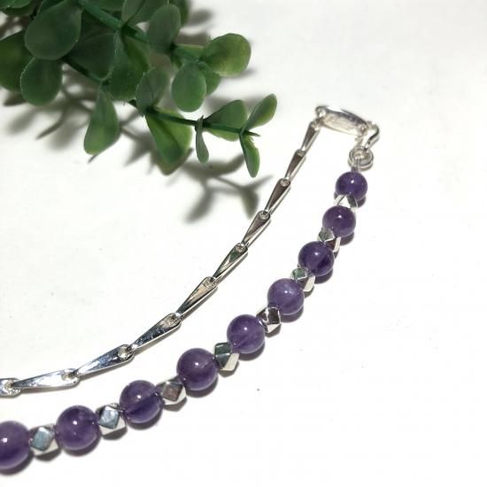 純銀と天然石*アメジスト×純銀パーツブレスレット カットタイプ 2月誕生石