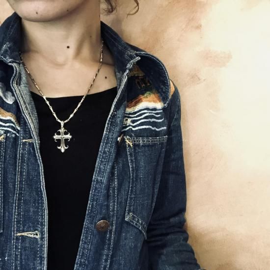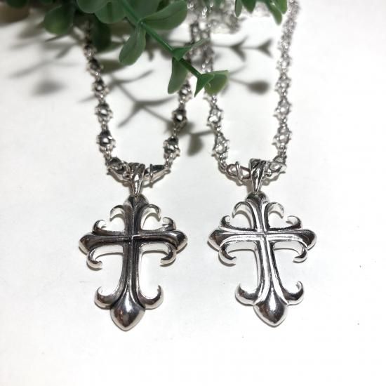 燻しありのペンダントには燻しを施したチェーンをあわせています