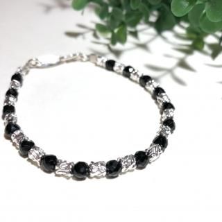 限定アイテム純銀と天然石*ブラックスピネル×純銀パーツブレスレット