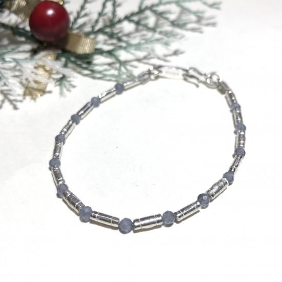 *小さなラベンダーアメジストと細長い純銀パーツを組み合わせたブレスレット