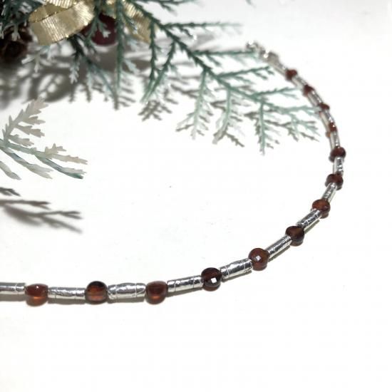 *小さな扁平丸のガーネットと細長い純銀パーツを組み合わせたブレスレット